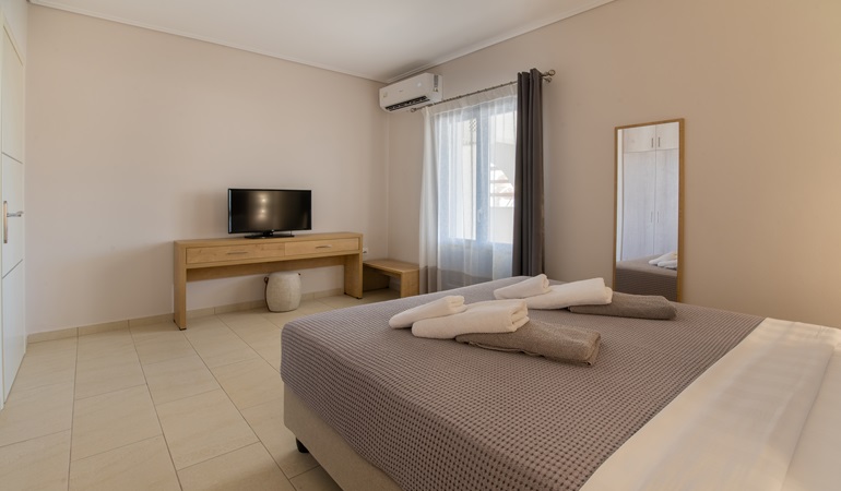 3 Bedroom Villa offers complete comfort and the occupancy is up to 6 people. It comprises a double bedroom with a queen size bed and two more bedrooms with 2 single beds each. Furthermore, it comes with 2 bathrooms with showers and a spacious living room. The Outdoor Seating Area has a private relaxing Jacuzzi and sunbeds. Last but not least, the villa includes a fully equipped kitchen to make various meals for you and your family.
